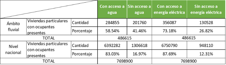 Cuadro 5: Porcentaje de viviendas con servicios básicos de agua y energía eléctrica en el ámbito fluvial amazónico vs. nivel nacional