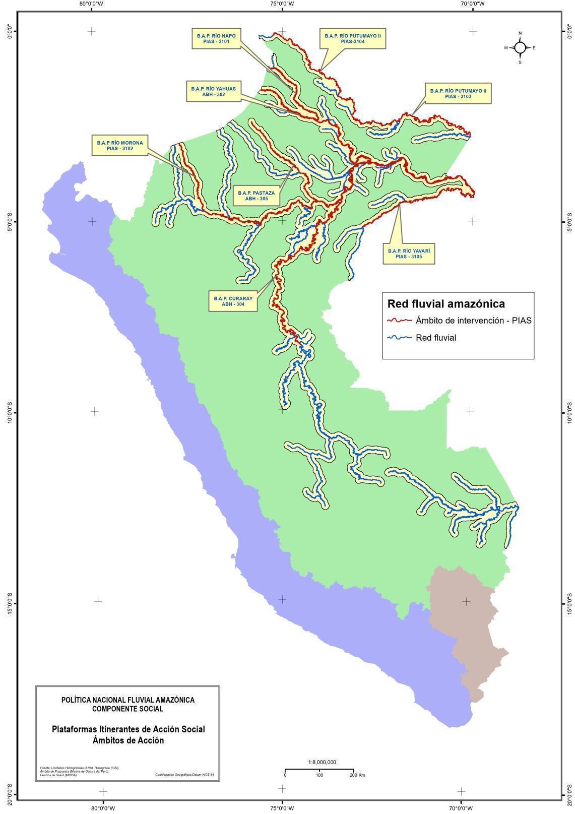 Se estima que la red fluvial amazónica tiene una longitud total aproximada de 17,487 km, y en la cuarta campaña mencionada anteriormente las PIAS recorrieron 3,312 km efectivos de dicha red (18.9%), teniendo una gran brecha por cerrar. En el gráfico siguiente se visualiza en color rojo el recorrido de la cuarta campaña y en color azul los tramos no recorridos de la red fluvial amazónica.