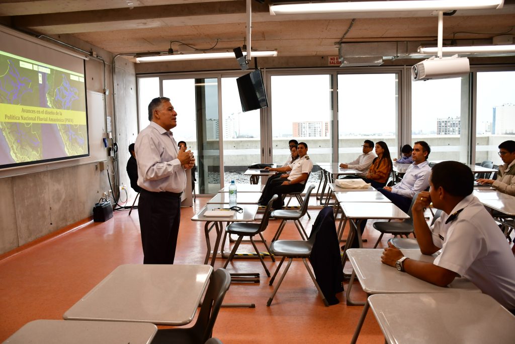 La Dirección de Intereses Marítimos realizó el 31 de mayo en la Universidad de Ingeniería y Tecnología (UTEC) el “Taller Conversatorio sobre la Política Nacional Fluvial Amazónica” que se enmarca en la estrategia de difusión y promoción de la conciencia marítima.